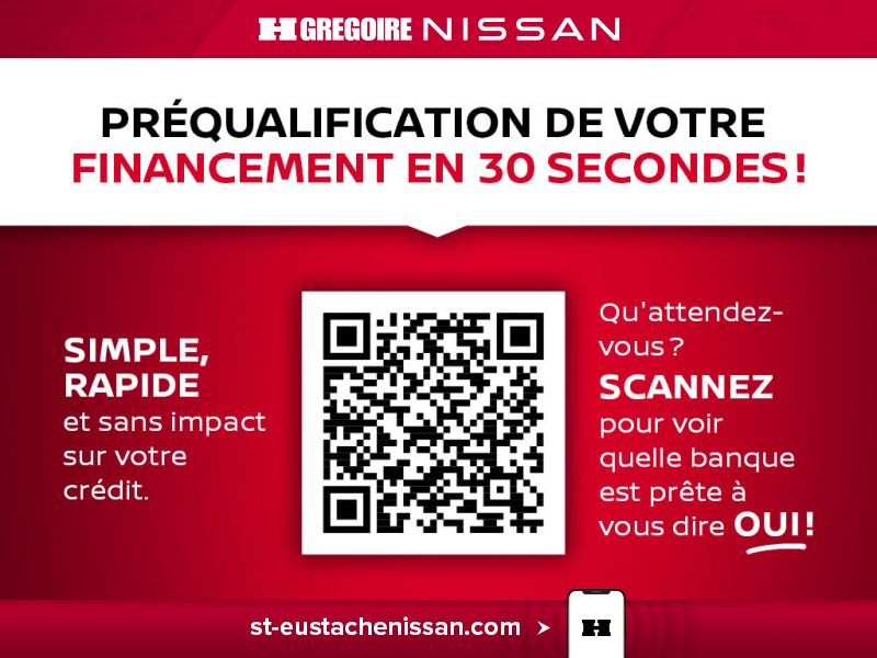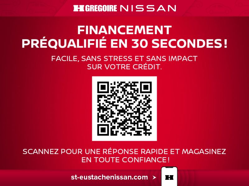 CERTIFIÉ ÉCONOMISEZ 7 103$! BAS KILOMÉTRAGE, BALANCE DE GARANTIE, Caméra de recul, Bluetooth, Sièges Chauffants Restez a la maison - ACHAT 100% EN LIGNE grace a HGregoire Nissan. Vous trouverez le VEHICULE dont vous revez a un PRIX COMPÉTITIF. Nos offres exclusives sont disponibles a des taux de financement avantageux. De plus, comme nous faisons partie du Groupe HGregoire, nous vous garantissons la MEILLEURE OFFRE pour votre vehicule d'echange, peu importe le modele. Faites vous plaisir des AUJOURD'HUI. Votre vehicule vous attend chez HGregoire Nissan! Cette offre comprend tous les rabais applicables. Transport et preparation non inclus. https://www.st-eustachenissan.com/fr-stk/SR4077 - CERTIFIED SAVE $7,103! LOW MILEAGE, GUARANTEE BALANCE, Back-Up Camera, Bluetooth, Heated Seats Stay at home - BUY YOUR VEHICLE 100% ONLINE with HGregoire Nissan. You will find the VEHICLE of your dreams at a COMPETITIVE PRICE. Our exclusive offers are available at advantageous financing rates. Moreover, since we are part of the HGregoire Group, we guarantee you the BEST OFFER for your trade-in vehicle, regardless of the model. Please yourself TODAY. Your vehicle is waiting for you at HGregoire Nissan! This offer includes all applicable discounts. Transportation and preparation not included. https://www.st-eustachenissan.com/en-stk/SR4077